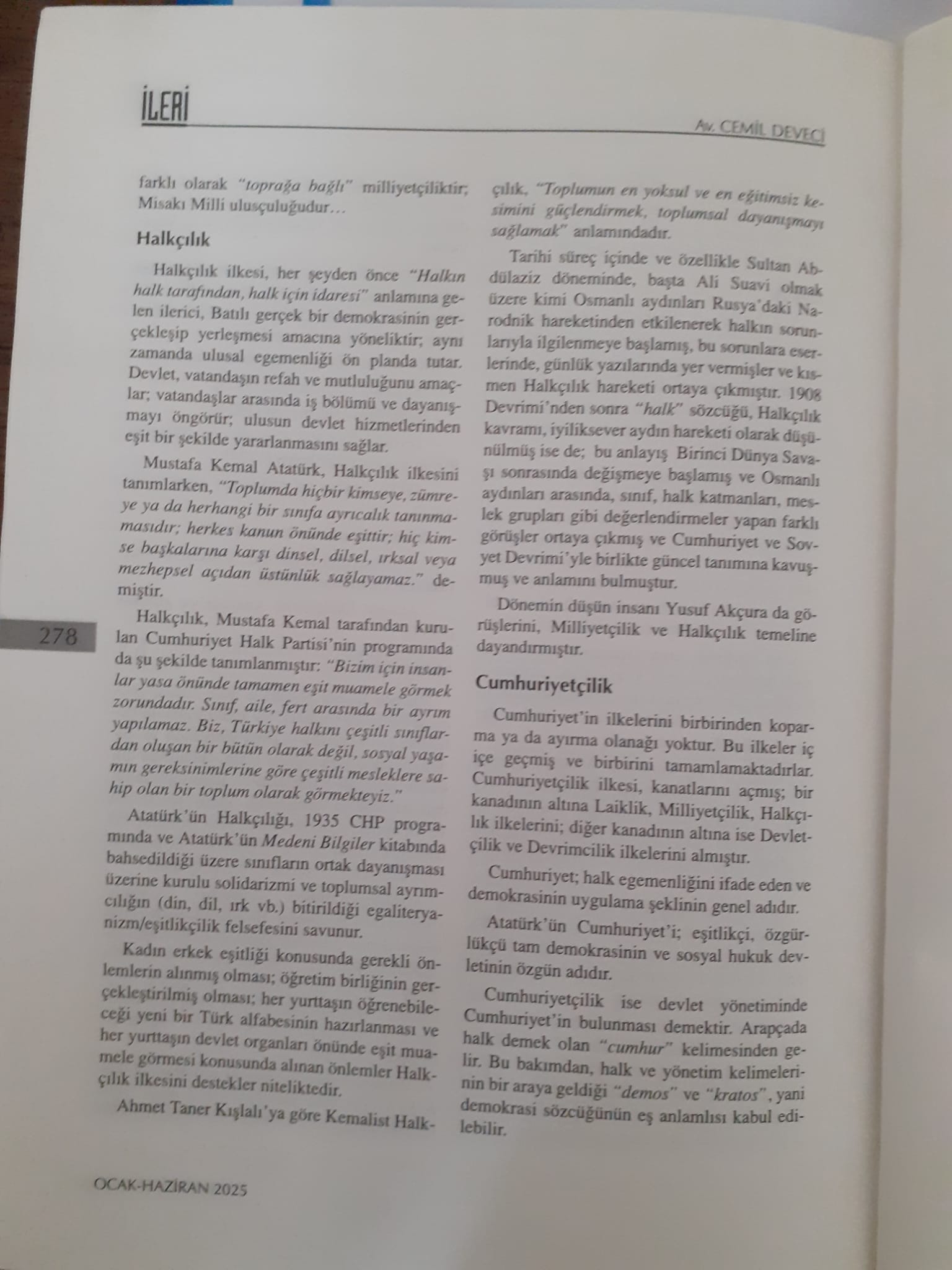 CUMHURİYETİN İLKELERİ